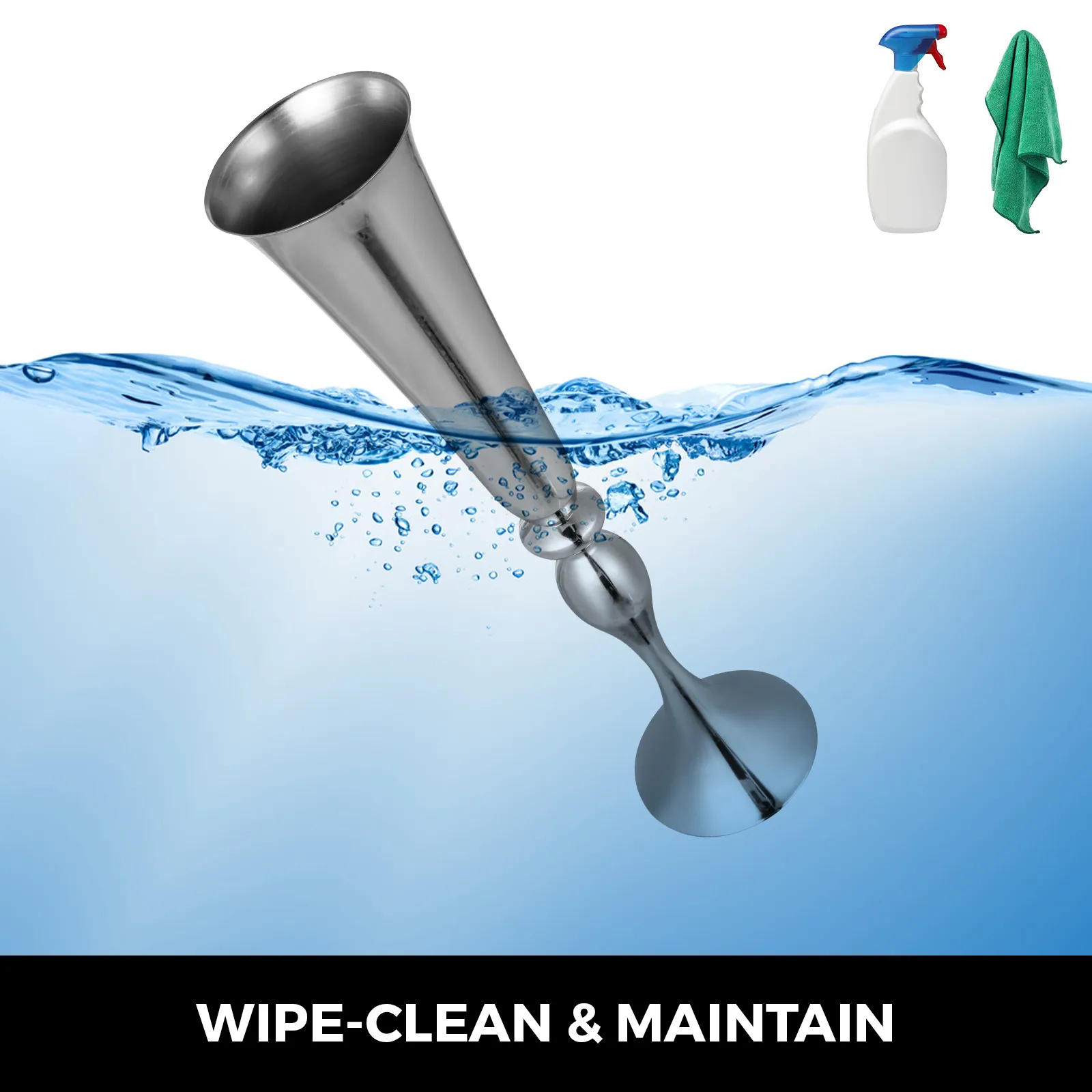 Ten wazon z trąbką można myć wodą po długotrwałym użytkowaniu. Poza tym możesz użyć ściereczki do czyszczenia, aby wytrzeć brud lub plamy na powierzchni.