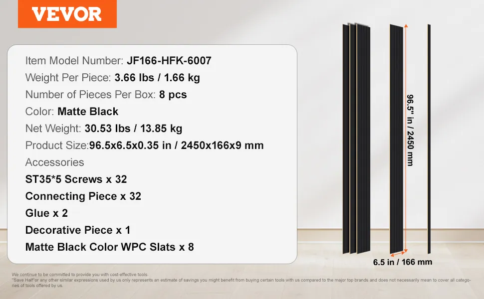 Wygodne pokrycie: Poszczególne elementy mają wymiary 96,5 x 6,5 cala / 2450 x 166 mm, zapewniając imponujący obszar pokrycia. Dzięki temu idealnie nadają się do dużych pomieszczeń, gwarantując jednocześnie płynną integrację z projektem.