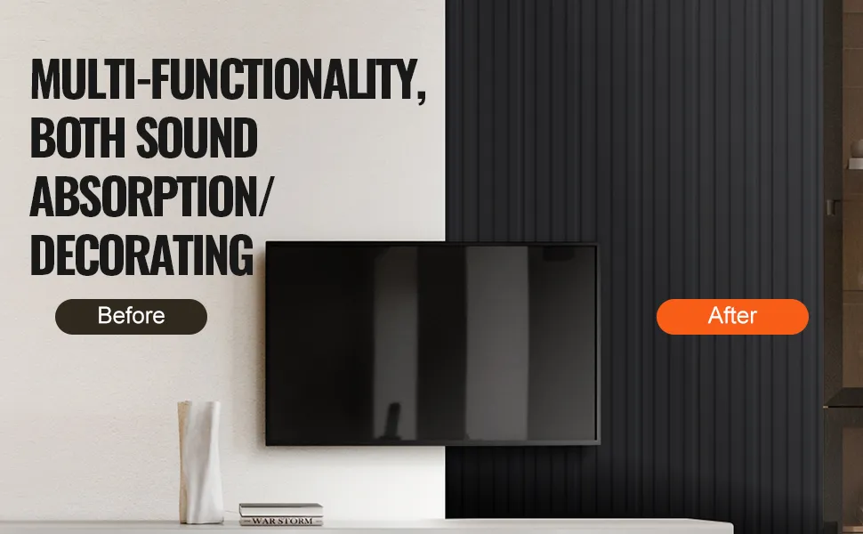 Ściany akustyczne z paneli WPC: Ściany akustyczne z paneli WPC łączą w sobie nowoczesne wzory listew z drewnianą powierzchnią, pięknie ozdabiają pomieszczenie i zapewniają uspokajające uczucie dzięki ognioodporności SGS.