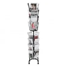 Stojak na ulotki i kartki okolicznościowe VEVOR z 32 przegródkami, obrotowy o 360°, stojak na czasopisma z uchwytem na szyld i 4 kółkami, stojak na ulotki na wystawy, do biur, na targi, stojak na ulotki
