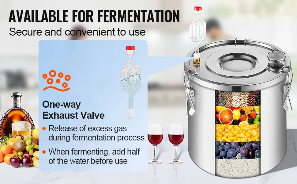 Bezpieczna fermentacja i ogrzewanie: Jednokierunkowy zawór wylotowy uwalnia gazy powstające podczas fermentacji, redukując ciśnienie wewnętrzne. Pogrubiona podstawa ze stali nierdzewnej jest kompatybilna z różnymi metodami ogrzewania, takimi jak kominki opalane drewnem, kuchenki gazowe i piekarniki gazowe, zapobiegając odkształceniom i uszkodzeniom. Wskaźnik temperatury na pokrywie wyświetla temperaturę w stopniach Celsjusza i Fahrenheita, ułatwiając monitorowanie temperatury podczas destylacji.