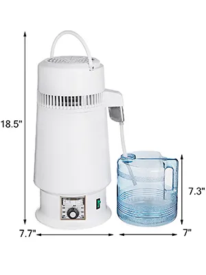 Dzięki wydajności destylacji wynoszącej 4 l w ciągu 4 godzin, nasz wydajny nadal chroni Twoje zdrowie. Rozpuszcza zanieczyszczenia, takie jak bakterie, cząsteczki, rozpuszczone ciała stałe i lotne związki organiczne, zapewniając czystą i oczyszczoną wodę. Dzięki cyfrowemu wyświetlaczowi i regulowanej temperaturze nasz produkt idealnie nadaje się do destylacji wody. Z łatwością możesz cieszyć się czystą wodą destylowaną w domu.