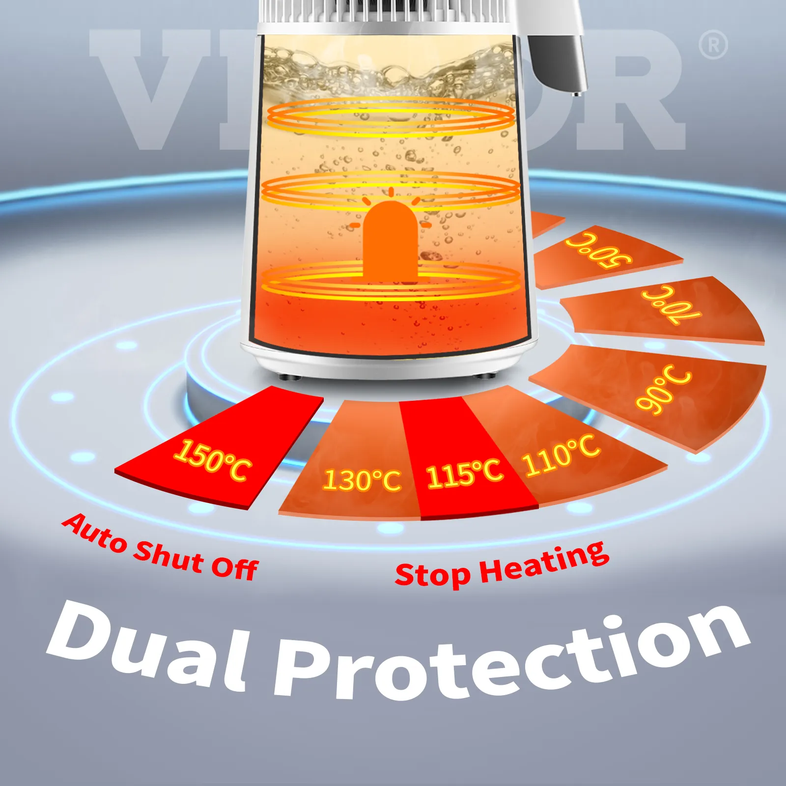 Urządzenie przestaje grzać, gdy temperatura przekroczy 115°C. I automatycznie wyłącza się, gdy temperatura wewnętrzna przekroczy 150°C. Ta podwójna ochrona zapewnia codzienną pracę.