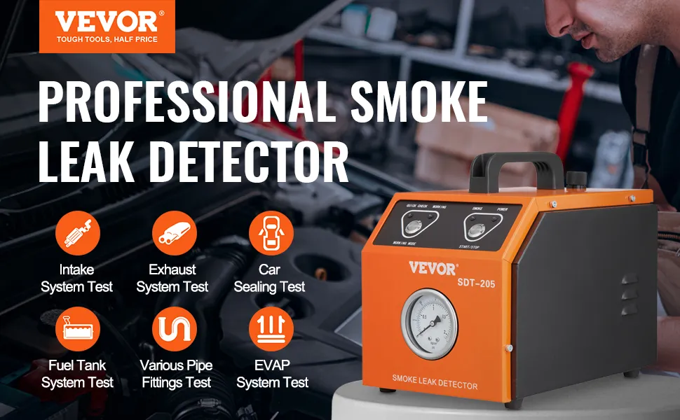 Detektor dymu VEVOR pomaga wykryć nieszczelności w dowolnym systemie rurowym, takie jak: B. układ EVAP, układ dolotowy, układ wydechowy i inne, aby szybko i dokładnie zlokalizować. Pozwala technikom i właścicielom samochodów skutecznie rozwiązywać problemy i znacznie skracać czas diagnostyki. Dzięki pełnej diagnostyce systemu nie przeoczysz żadnych wycieków.