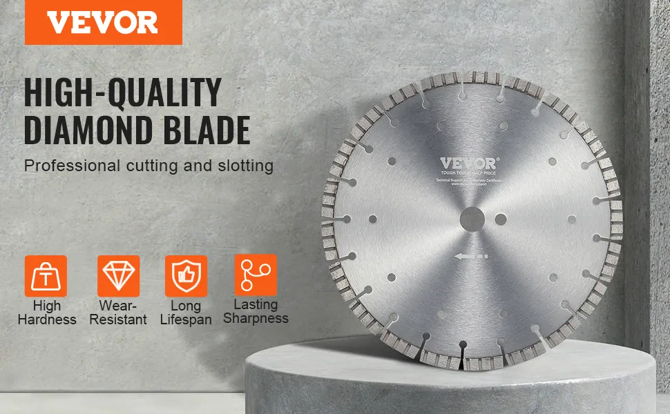 Ostrze do betonu jest ostre i wszechstronne, odpowiednie do rowkowania i cięcia betonu, płytek, betonu zbrojonego, cegieł, marmuru i innych rodzajów kamienia. Spełnia wymagania profesjonalnych prac budowlanych i codziennego użytku domowego.