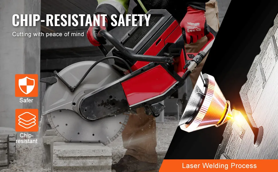 Bezpieczna i odporna na uszkodzenia zębów: Segmenty diamentowe tarczy tnącej do betonu są przyspawane laserowo do korpusu tarczy, tworząc zintegrowaną tarczę tnącą, która skutecznie zapobiega uszkodzeniom lub łamaniu zębów podczas cięcia, a tym samym znacznie zwiększa bezpieczeństwo użytkownika.