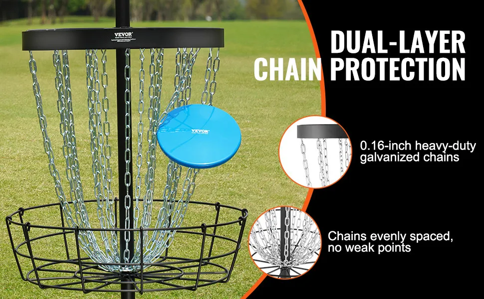Kosz do disc golfa VEVOR ma 24 łańcuchy. Te łańcuchy zapewniają niezawodną siłę zatrzymywania dysków. Dzięki temu idealnie nadaje się do poprawy krótkiej gry. Możesz ćwiczyć putting z pewnością siebie. Te łańcuchy zapewniają bezpieczne łapanie dysków. Dzięki temu sesje treningowe będą bardziej efektywne. 24 łańcuchy zwiększają ogólną trwałość kosza. Jest idealny do doskonalenia umiejętności i technik. Niezawodna siła zatrzymywania zapewnia dokładne ćwiczenia. To cenne narzędzie dla każdego gracza w disc golfa, który chce poprawić swoją grę.