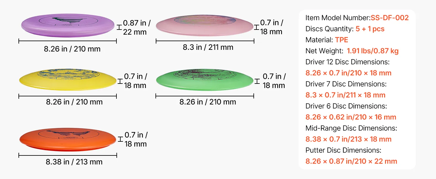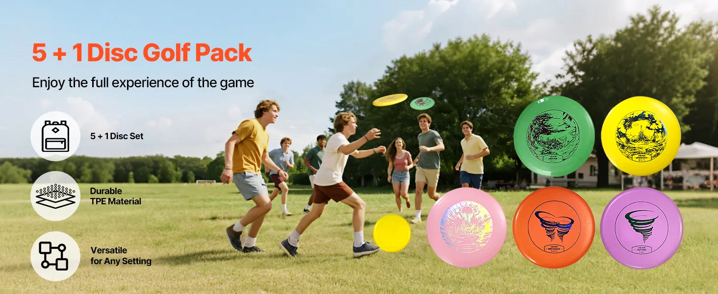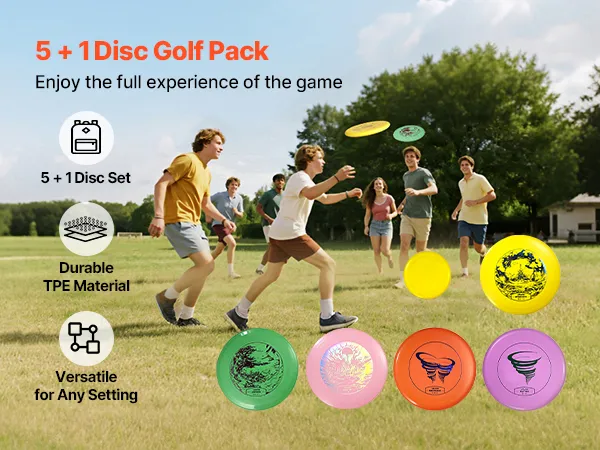 5 + 1 dysków, wszystko, czego potrzebujesz do gry: Ten zestaw do disc golfa zawiera 5 + 1 starannie zaprojektowanych dysków. Początkujący mogą łatwo zacząć i cieszyć się zabawą w disc golfa, a zaawansowani gracze mogą doskonalić swoje umiejętności i zdobywać doświadczenie w bardziej precyzyjnych rzutach.