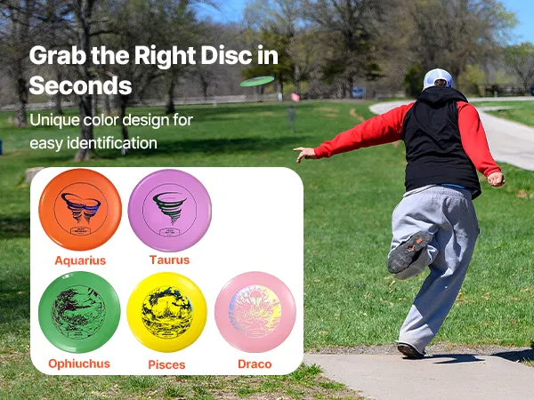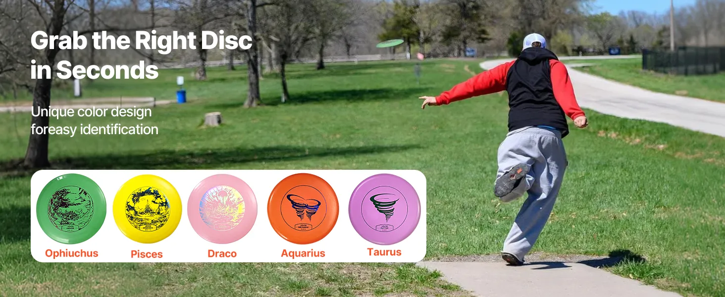 Wyraźna grafika i napisy: Każdy dysk zawiera nadrukowane wzory i tekst, które pomagają początkującym szybko zrozumieć podstawy disc golfa. Odpowiedni zarówno dla nowych, jak i doświadczonych graczy, którzy chcą doskonalić swoje umiejętności.