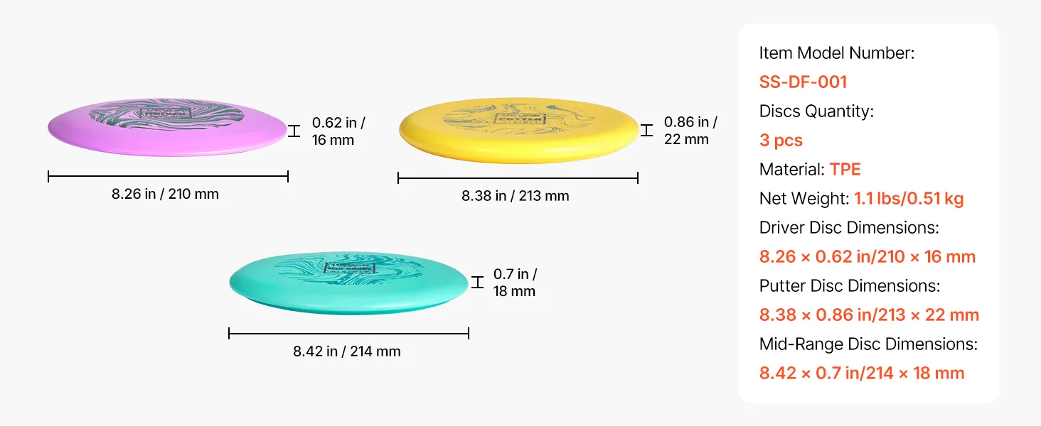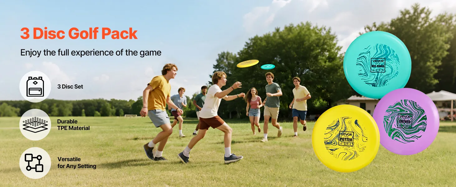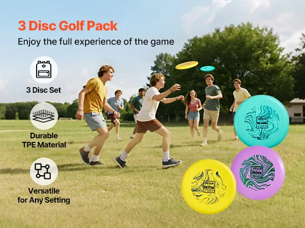 3 dyski, wszystko, czego potrzebujesz do gry: Ten zestaw do disc golfa zawiera 3 starannie zaprojektowane dyski. Początkujący mogą łatwo zacząć i cieszyć się zabawą w disc golfa, a zaawansowani gracze mogą doskonalić swoje umiejętności i zdobywać doświadczenie w bardziej precyzyjnych rzutach.