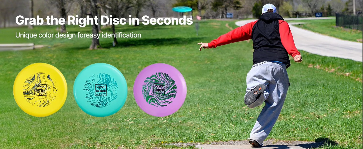 Wyraźna grafika i napisy: Każdy dysk zawiera nadrukowane wzory i tekst, które pomagają początkującym szybko zrozumieć podstawy disc golfa. Odpowiedni zarówno dla nowych, jak i doświadczonych graczy, którzy chcą doskonalić swoje umiejętności.
