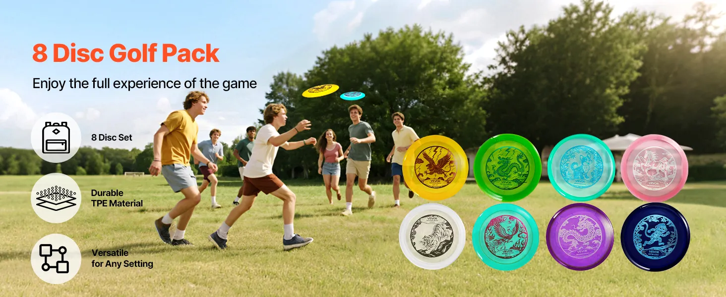 Zestaw startowy do disc golfa VEVOR (8 elementów), frisbee dla początkujących do treningu siłowego całego ciała, z putterem, średni zasięg, driver, zatwierdzony przez PDGA, do ogrodu, trawnika, plaży, parku, na zewnątrz