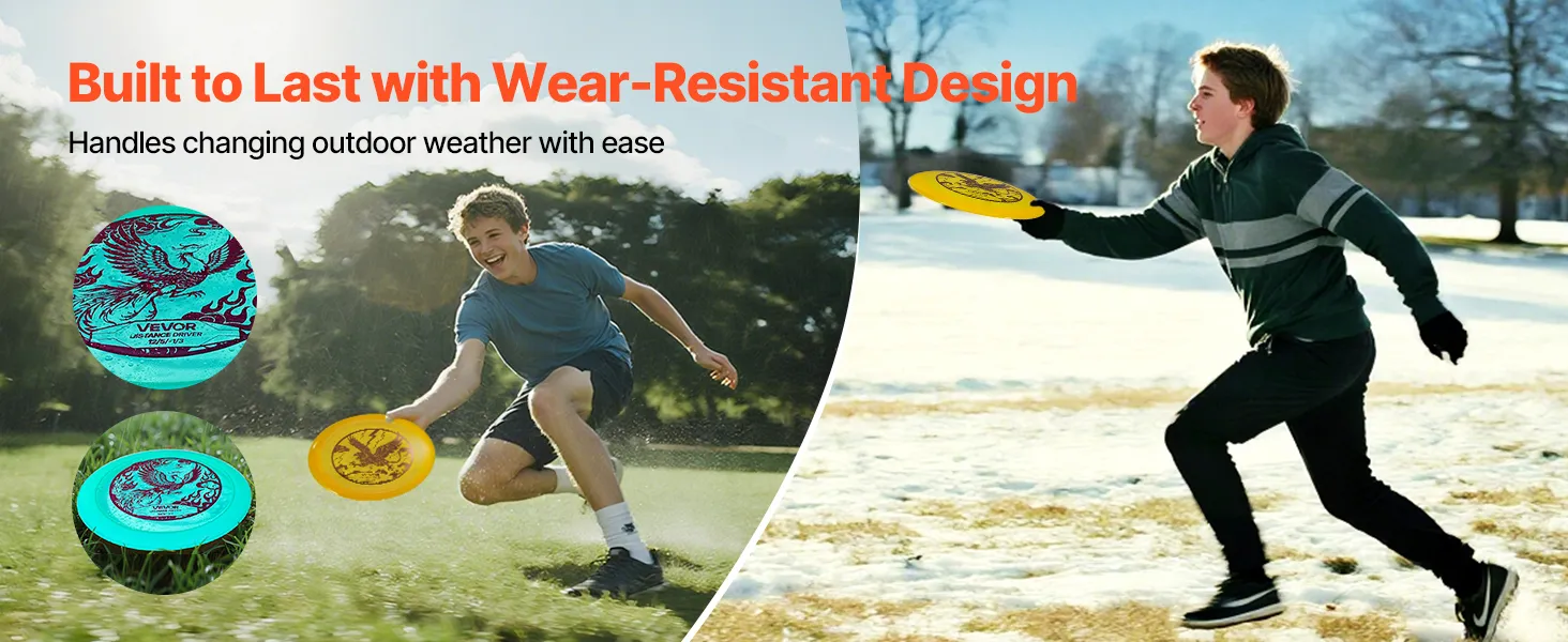 Wszechstronny w każdym środowisku: Ten zestaw idealnie sprawdzi się w różnych warunkach zewnętrznych. Idealny do gry na trawie, piasku, w parkach lub na własnym podwórku. Ciesz się disc golfem, gdziekolwiek jesteś.