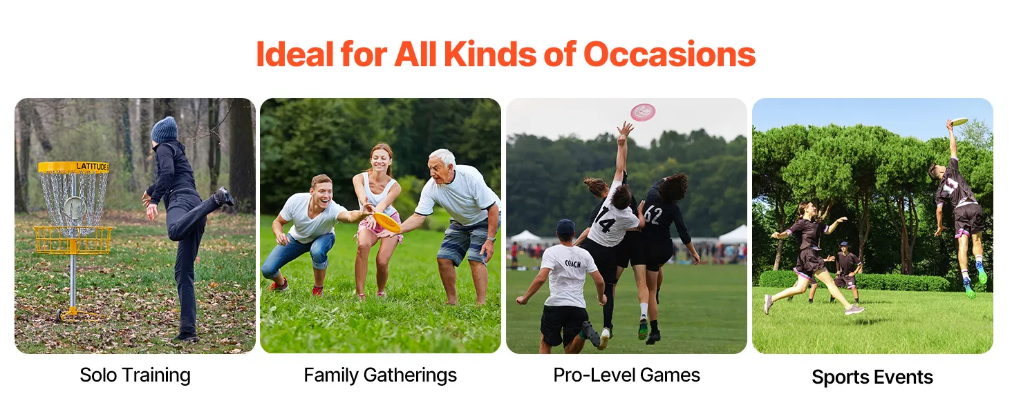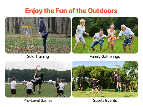 Ten zestaw do disc golfa idealnie nadaje się do treningów indywidualnych, spotkań rodzinnych, zawodów zawodowych i imprez sportowych. Pozwala cieszyć się aktywnością na świeżym powietrzu w różnych warunkach, zachować aktywność, dobrze się bawić i poprawić kondycję.