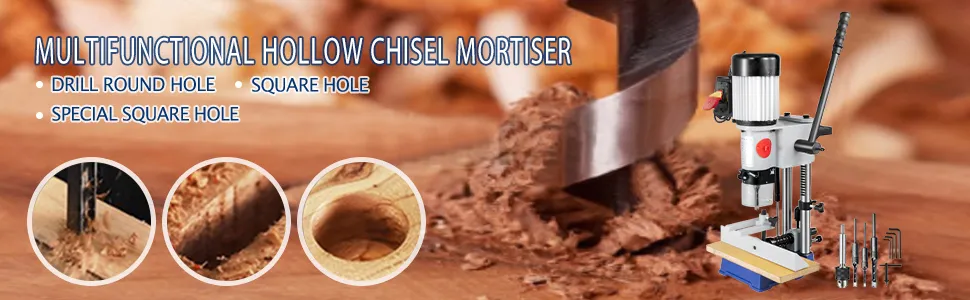 【 Szeroko stosowane 】- Ta wielofunkcyjna maszyna do dłutowania może nie tylko wycinać nacięcia w drewnie, takie jak koła, kwadraty i kwadraty specjalne, ale może być również używana do okrągłych rowków, szlifowania wewnętrznego, wiercenia w metalu itp.