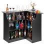 VEVOR Domowy barek w kształcie litery L z miejscem do przechowywania, blat barowy z 4 półkami i uchwytem na kieliszki do wina, nośność 136 kg, narożny blat barowy z drewna konstrukcyjnego do domu, kuchni, salonu, piwnicy, stolik barowy 130 x 100 x 112 cm, czarny