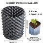 Opakowanie zawiera 6 szt. doniczek powietrznych z torbą do ogrodnictwa. Średnica dna wynosi 20 cm, a wysokość doniczki 30 cm. Jest to ekwiwalentna doniczka ogrodowa o pojemności 2,5 galona / 9,5 l, która pomieści roślinę od 2 stóp (około 61 cm) do 4 stóp (około 122 cm).