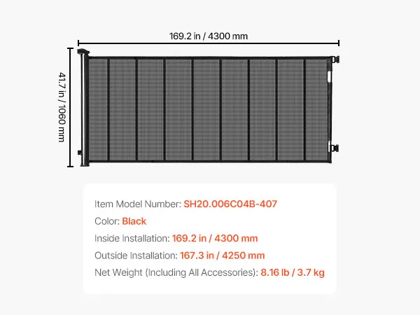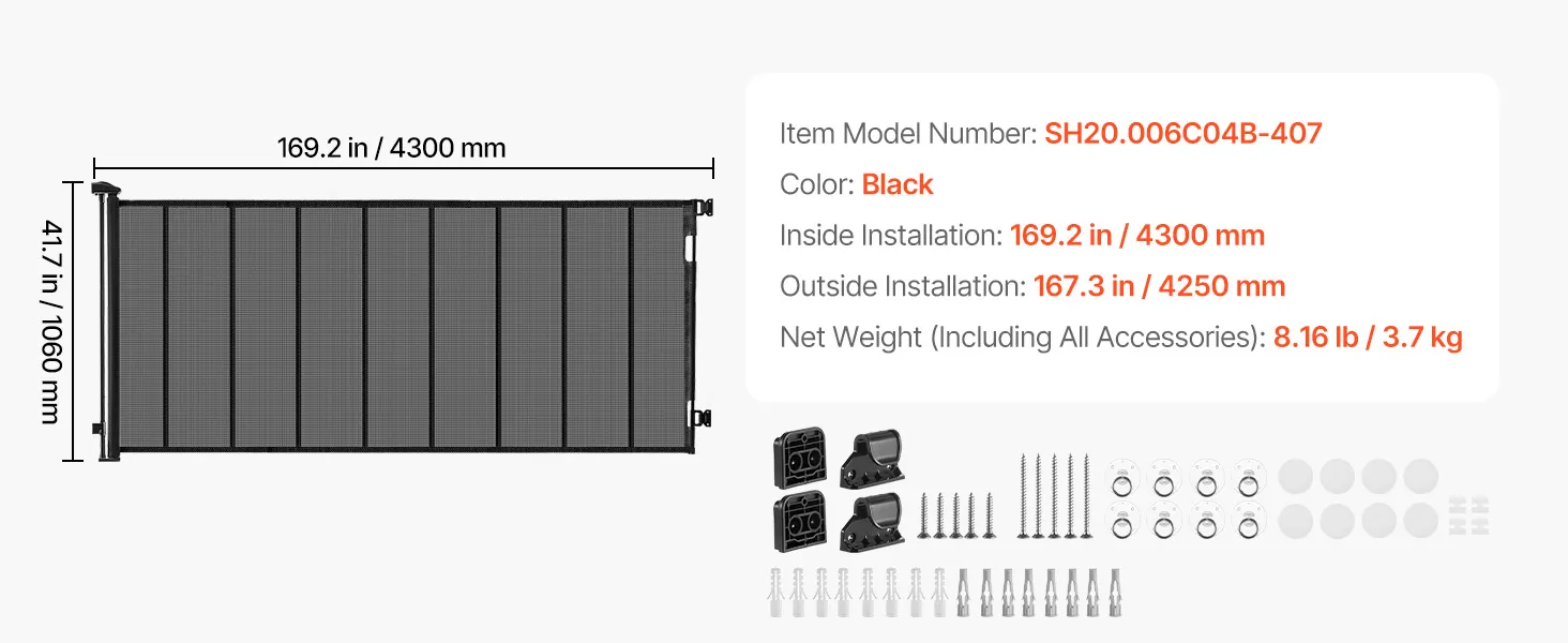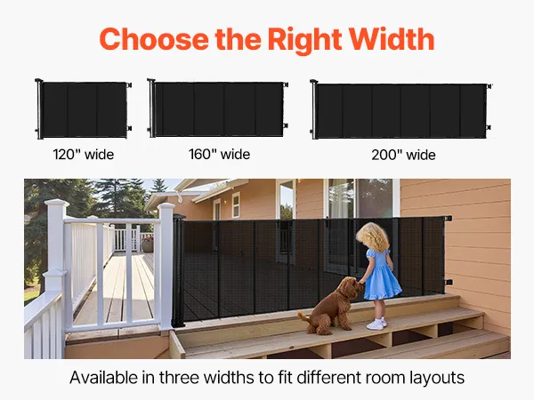 VEVOR Rozkładana bramka dla dziecka i psa, rozsuwana do 415 cm szerokości / 99 cm wysokości, bramka dla zwierząt z wzmocnionymi paskami z włókna szklanego, siatkowa bramka ochronna na tarasy i garaże, czarna
