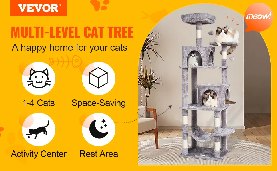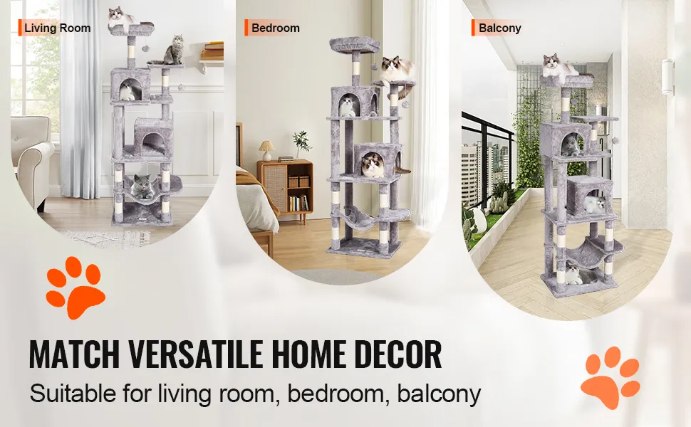 Ten drapak dla kota VEVOR ma wiele poziomów do eksploracji przez Twojego kota. Platformy różnią się wysokością, pozwalając Twojemu pupilowi na swobodne wspinanie się. Koty mogą znaleźć idealne miejsce, czy to na górnej grzędzie, czy na niższej powierzchni do odpoczynku. Ta wielopoziomowa konstrukcja zaspokaja naturalne instynkty wspinaczkowe kotów. Zapewnia im wystarczającą ilość ruchu i stymulacji umysłowej. Te różne poziomy zapewniają oddzielne przestrzenie, idealne dla gospodarstw domowych z wieloma kotami. Każdy kot może mieć własną przestrzeń, co zmniejsza spory terytorialne. Ta mocna konstrukcja wytrzymuje do 88 funtów, mieszcząc jednocześnie wiele kotów. Dzięki temu drapakowi dla kota Twoi koci przyjaciele mogą cieszyć się radosną zabawą i bezpiecznym doświadczeniem wspinaczki.