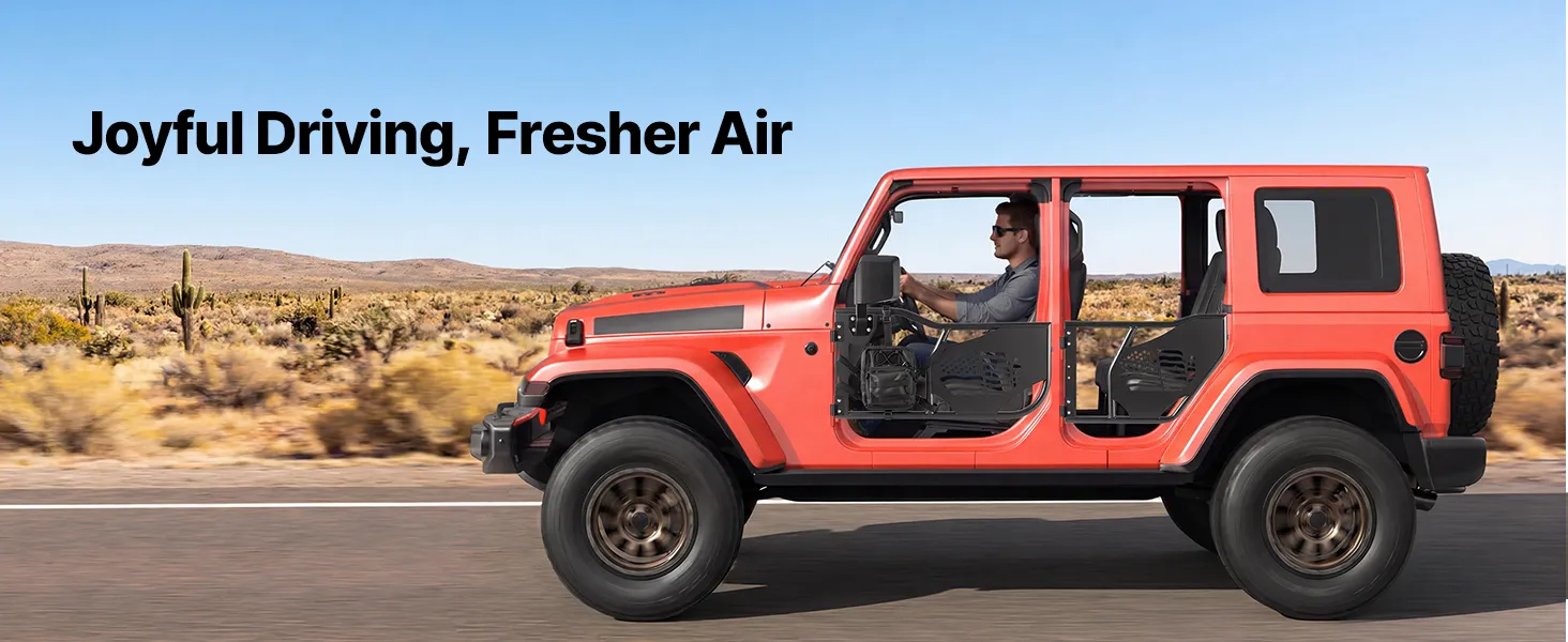 Szeroka kompatybilność: Te rurowe drzwi Jeepa zostały zaprojektowane specjalnie dla 4-drzwiowego Jeepa Wranglera JK Unlimited (2007–2018) i pasują zarówno do przednich, jak i tylnych drzwi. Poprawiają widoczność, przepływ powietrza i odprowadzanie ciepła, dzięki czemu jazda w terenie jest jeszcze przyjemniejsza.