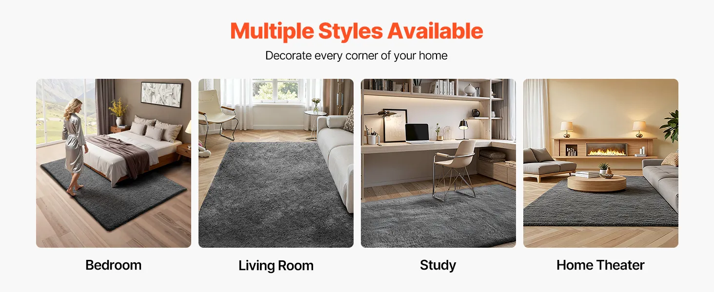 Dzięki prostemu i eleganckiemu wzornictwu, ten pluszowy dywan do salonu marki VEVOR idealnie wpasowuje się w nowoczesny wystrój. Dostępny w kolorze szarym, mieszanym z szarością, kości słoniowej i czarnym, upiększa sypialnie, salony, gabinety i oranżerie, dodając stylowego akcentu, który sprawdzi się w wielu pomieszczeniach.