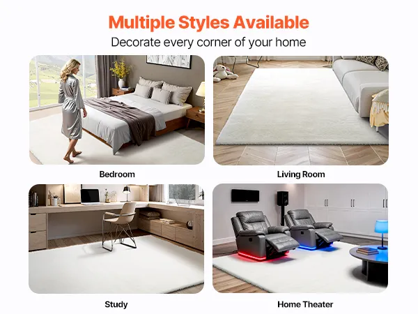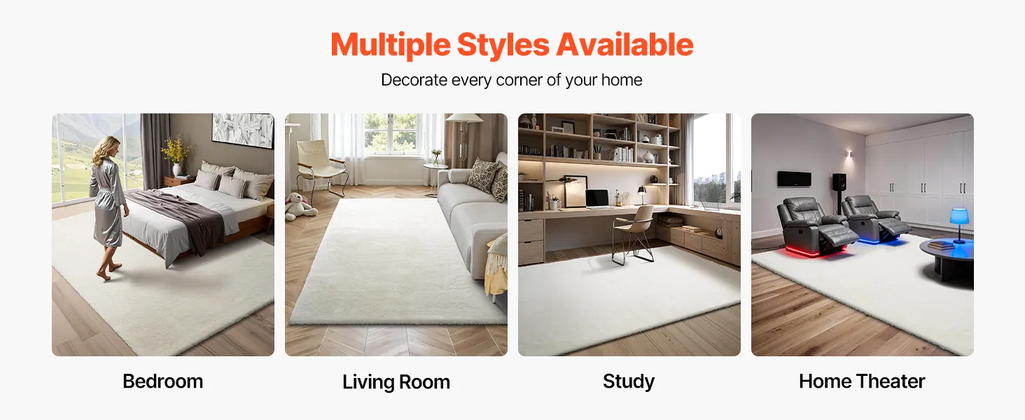 Dzięki prostemu i eleganckiemu wzornictwu, ten pluszowy dywan do salonu marki VEVOR idealnie wpasowuje się w nowoczesny wystrój. Dostępny w kolorze szarym, mieszanym z szarością, kości słoniowej i czarnym, upiększa sypialnie, salony, gabinety i strefy wypoczynkowe, dodając im stylowego charakteru, który sprawdzi się w wielu pomieszczeniach.