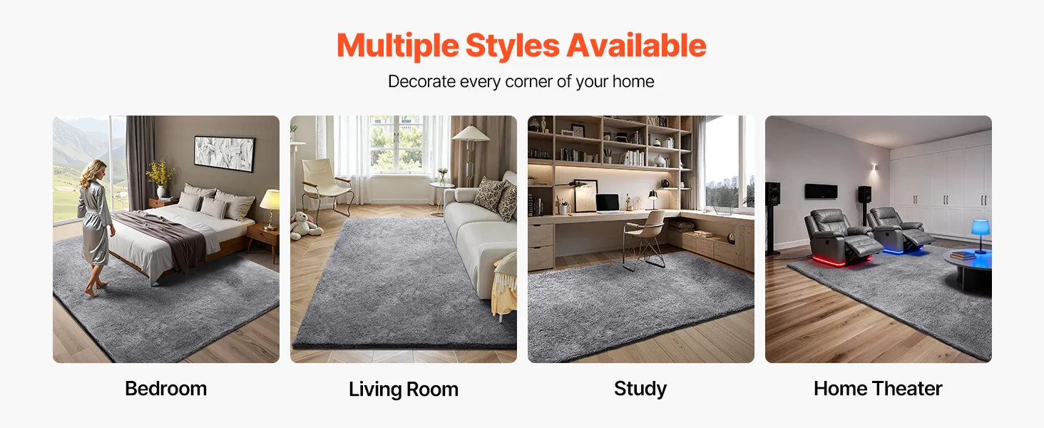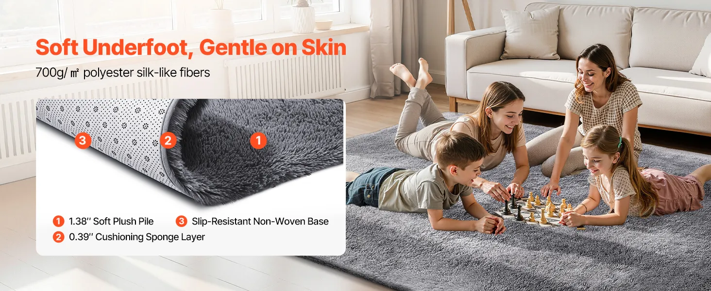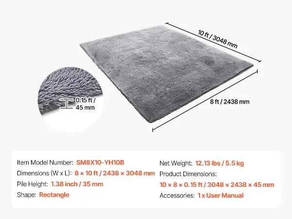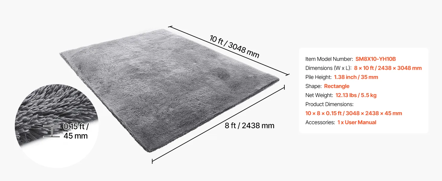 Dywan VEVOR z długim włosiem 3048x2438 mm, puszysty dywan do salonu z trójwarstwowym materiałem, wysokość włosia 35 mm, do salonu, sypialni, pokoju wypoczynkowego, niepylący i miękki, szary