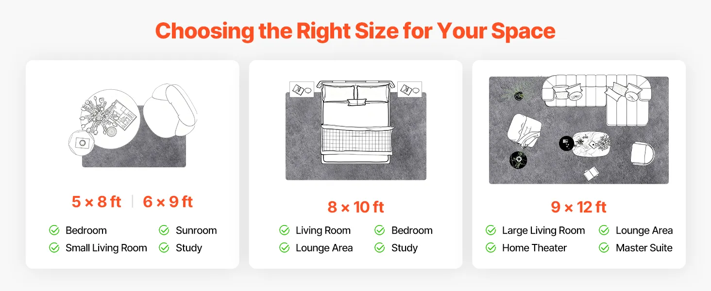Różne rozmiary: Znajdź idealny rozmiar dzięki naszemu pluszowemu dywanowi do salonu. Dostępny w rozmiarach M, L i XL. Nadaje się do sypialni, gabinetów lub przestronnych salonów. Te rozmiary pozwalają na dopasowanie go do wymiarów Twojego domu.