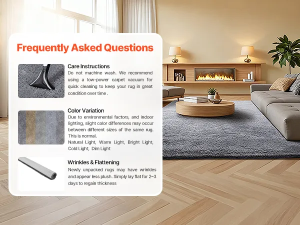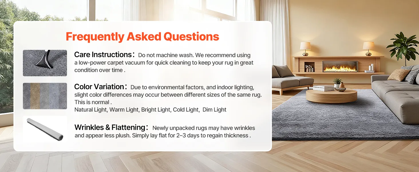 Instrukcje dotyczące pielęgnacji: Dywanu nie należy prać. Zamiast tego należy użyć odkurzacza o małej mocy. Uwaga: kolory mogą się nieznacznie różnić w zależności od oświetlenia lub ustawień ekranu. Po otrzymaniu dywanu wystarczy go rozłożyć na płasko na 2-3 dni, aby przywrócić mu puszystość.