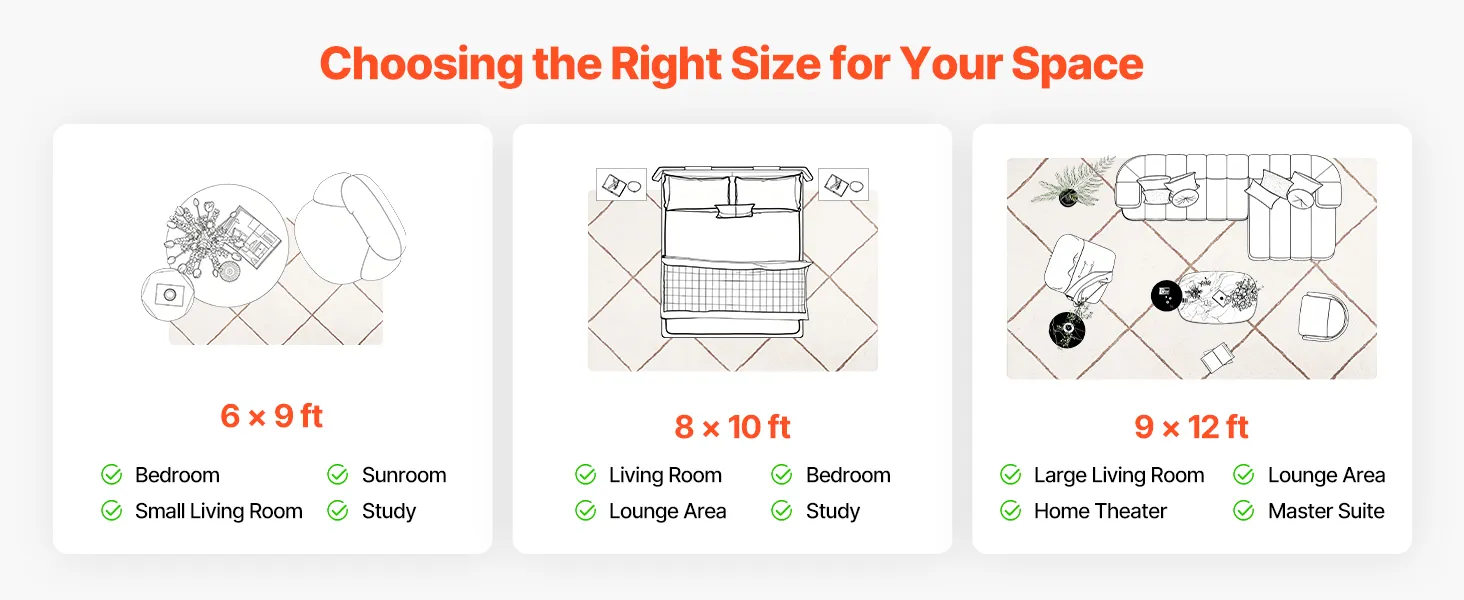 Łatwy wybór odpowiedniego rozmiaru: Wybierz idealny rozmiar do swojego pokoju. Dostępne są rozmiary M, L i XL. Dzięki temu możesz dopasować rozmiar dywanu do sypialni, salonu lub biura – dla wygody i stylu.