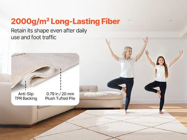 Ten pluszowy dywan, wykonany z trwałych włókien z antypoślizgowym spodem z tworzywa TPR, zapewnia stabilność i ciepło pod stopami. Gęsto tkana powierzchnia zapobiega strzępieniu się i rozwarstwianiu, dzięki czemu dywan zachowuje swój kształt i wygląd nawet przy intensywnym użytkowaniu.