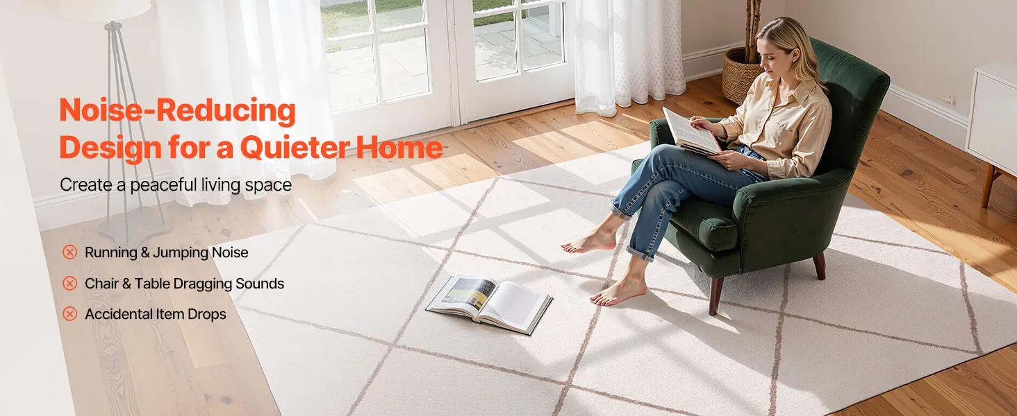Komfort spokojnego życia: Ten gruby i gęsty dywan do salonu pochłania codzienne odgłosy, takie jak kroki czy przesuwanie mebli. Tworzy cichsze otoczenie do czytania, pracy lub snu, zapewniając spokojną i niezakłóconą atmosferę w całym domu.