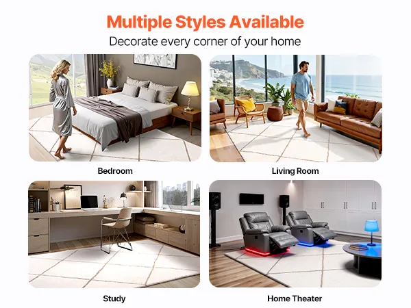 Dzięki prostemu i eleganckiemu wzornictwu, ten miękki dywan do salonu idealnie pasuje do nowoczesnych wnętrz. Dostępny w kolorze beżowym oraz połączeniu niebieskiego, białego i szarego, idealnie wpasuje się do sypialni, salonów, gabinetów, a nawet kin domowych, dodając komfortu i stylu każdemu pomieszczeniu.