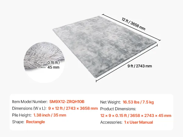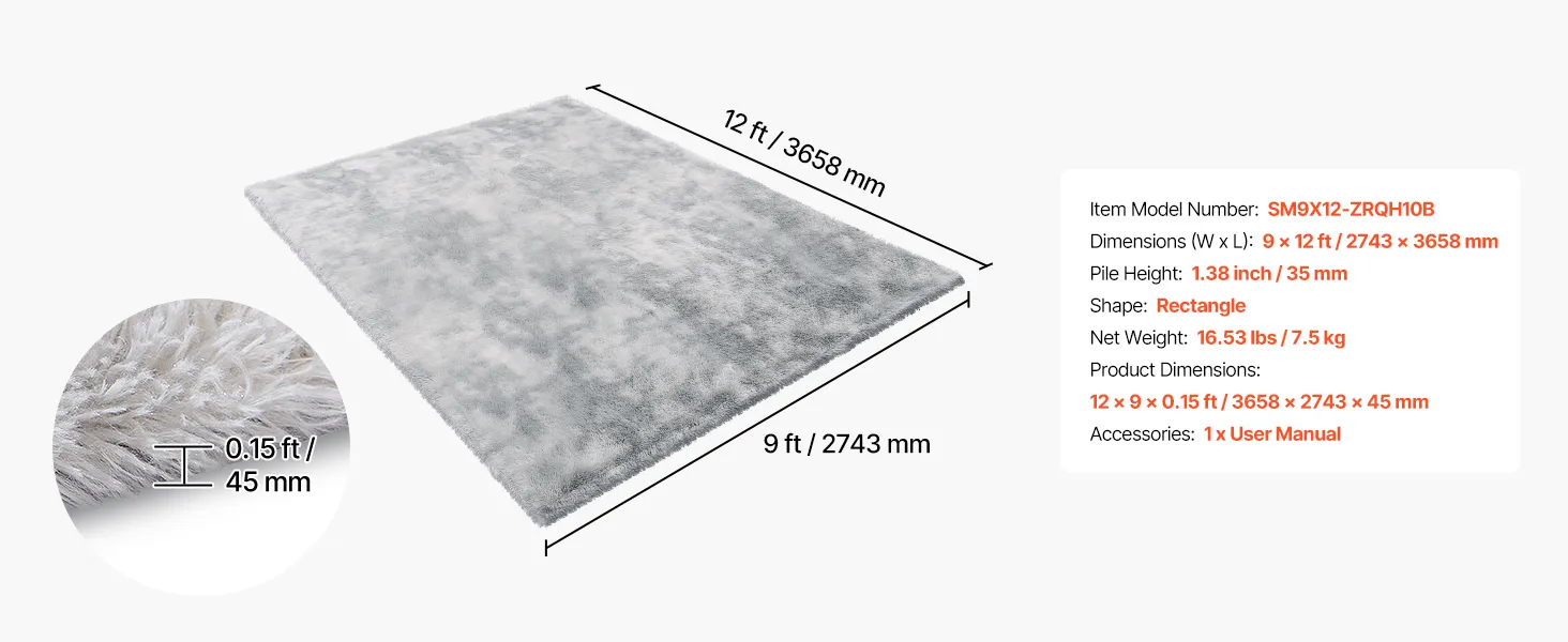 Dywan VEVOR z wysokim włosiem, 2743 x 3658 mm, puszysty dywan z trójwarstwowego materiału, wysokość włosia 35 mm, do dużych salonów, kin domowych, stref wypoczynkowych, nie pozostawiający włókien i miękki, łatwy do czyszczenia