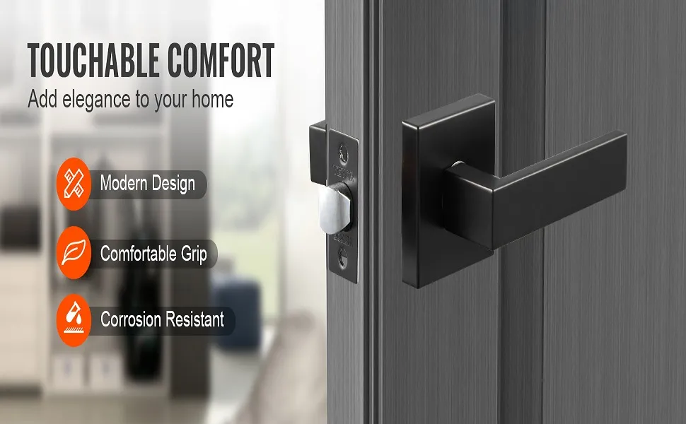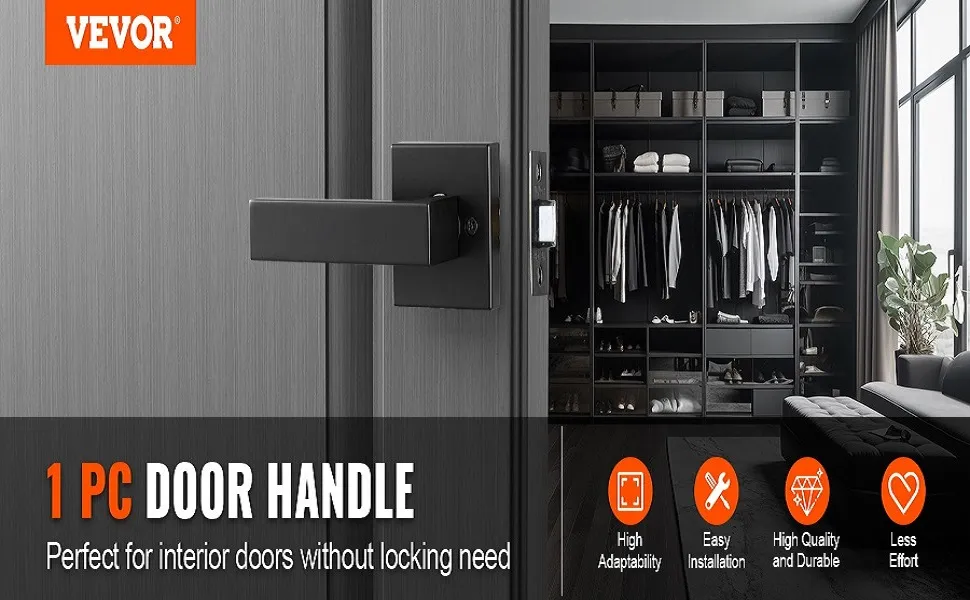 Klamka do drzwi przejściowych VEVOR, matowa, czarna, kwadratowa, 1 sztuka, lewa lub prawa, odwracalna, bez blokady, uniwersalna, do korytarzy, szaf, sal konferencyjnych