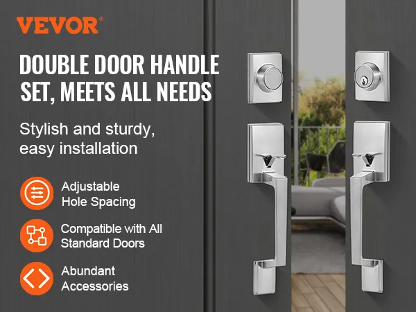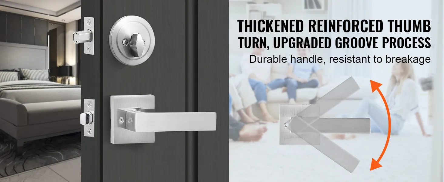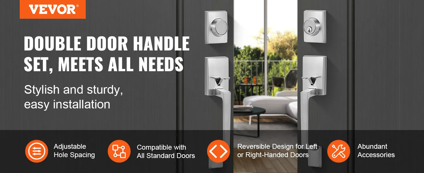 Nasz zestaw zamków do drzwi podwójnych ma panel i wewnętrzną klamkę. Zmodernizowaliśmy je ze stali nierdzewnej tłoczonej na odlewanie ciśnieniowe ze stopu cynku. Taka konstrukcja nie tylko zapewnia ulepszoną fakturę, ale także wysoką wytrzymałość na rozciąganie. Nasz zestaw jest wysoce odporny na rdzę i korozję. Jest idealny do różnych środowisk. Wzmocniona gałka i kwadratowa klamka drzwi z przetartym i rowkowanym wzorem zapobiegają pękaniu klamki, gwarantując długotrwałą trwałość i spokój ducha.