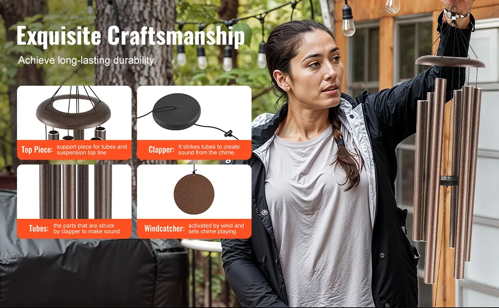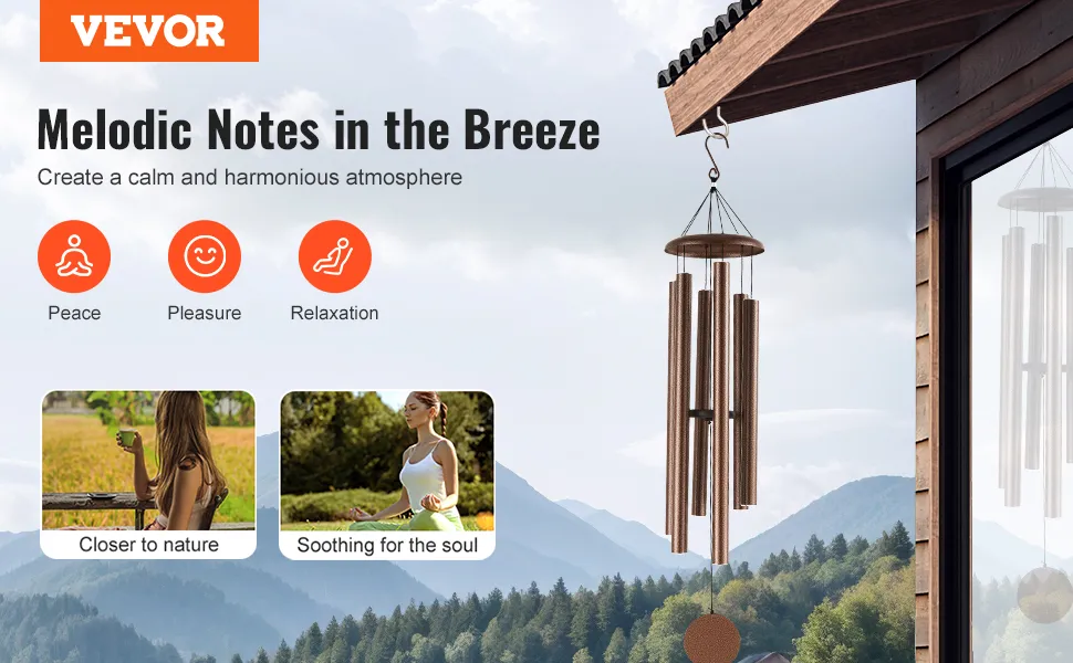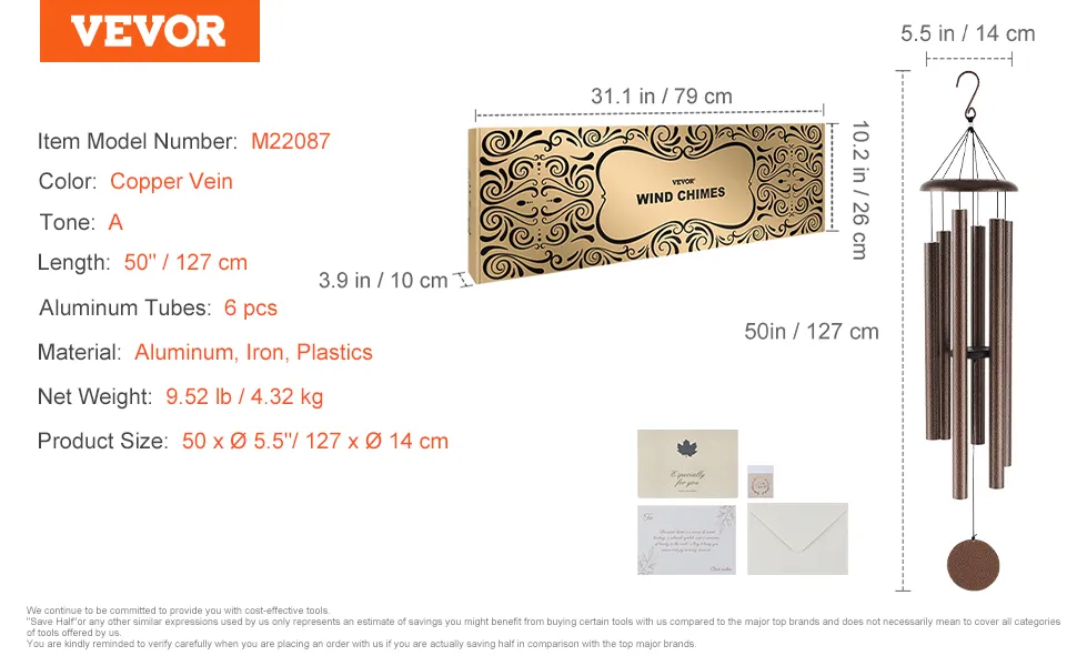 Dzwonek wietrzny VEVOR, 127 cm, głęboki dźwięk, z 6 rurkami, wyjątkowy, duży, pamiątkowy dzwonek wietrzny z okazji rocznicy, wspaniała dekoracja na patio, werandę, do ogrodu i na podwórko, żyła miedziana