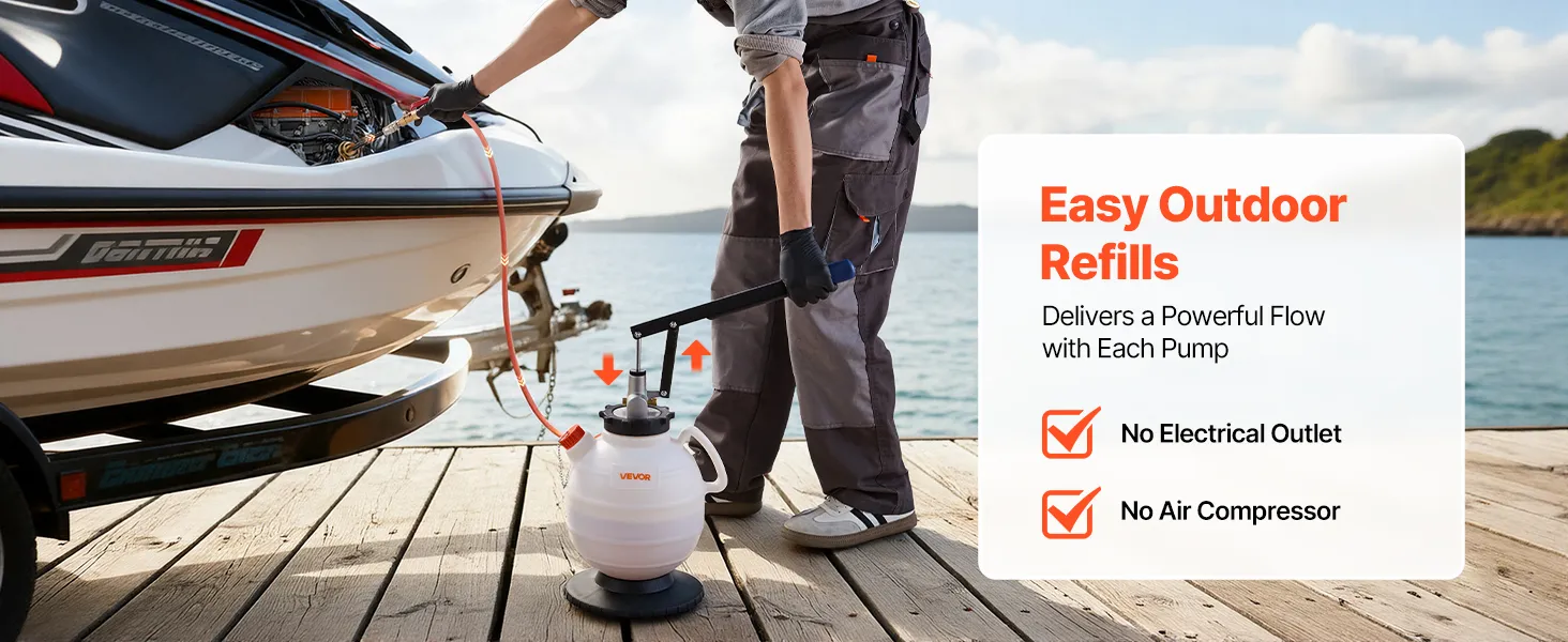 Ta pompa do napełniania skrzyni biegów bez problemu uzupełnia oleje i płyny chłodnicze – idealna do samochodów, motocykli, łodzi i skuterów wodnych. Ciesz się szybką i czystą obsługą, niezależnie od tego, czy jesteś w garażu, na podjeździe, czy na nabrzeżu.