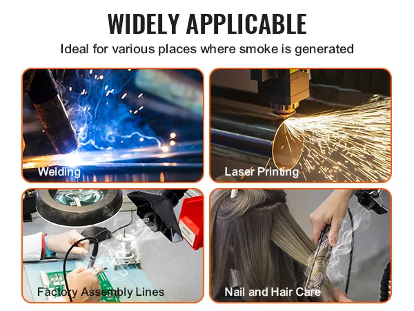 Nasz pochłaniacz oparów lutowniczych jest kompaktowy i zajmuje niewiele miejsca. Nadaje się do różnych pomieszczeń zadymionych, takich jak: usuwanie dymu, pyłów, czyszczenie laserowe, usuwanie gazów niebezpiecznych, salony kosmetyczne, salony kosmetyczne, drukarnie i spawalnie.