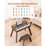 Klawiatura dziecięca VEVOR, 37 klawiszy, drewniane pianino cyfrowe dla dzieci w wieku od 3 lat, zestaw miniaturowych instrumentów muzycznych ze stołkiem, realistyczny dźwięk, podwójne zasilanie, regulowana głośność, orzech włoski
