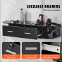 Stacja robocza jest wyposażona w 2 szuflady. Jedna z tych szuflad ma zamek. Ta funkcja zwiększa przestrzeń do przechowywania i bezpieczeństwo. Możesz bezpiecznie przechowywać swoje cenne przedmioty. Szuflady są pojemne i praktyczne. Mogą pomieścić różne narzędzia i akcesoria salonowe. Zamek zapewnia dodatkową warstwę bezpieczeństwa, co jest przydatne zarówno w zastosowaniach profesjonalnych, jak i domowych. Konstrukcja gwarantuje organizację i ochronę Twoich przedmiotów. Te szuflady są łatwo dostępne. Dzięki temu korzystanie z nich będzie wygodne. Istotną zaletą jest dodatkowa funkcja bezpieczeństwa. Oznacza to, że zawsze możesz mieć swoje ważne rzeczy bezpieczne.