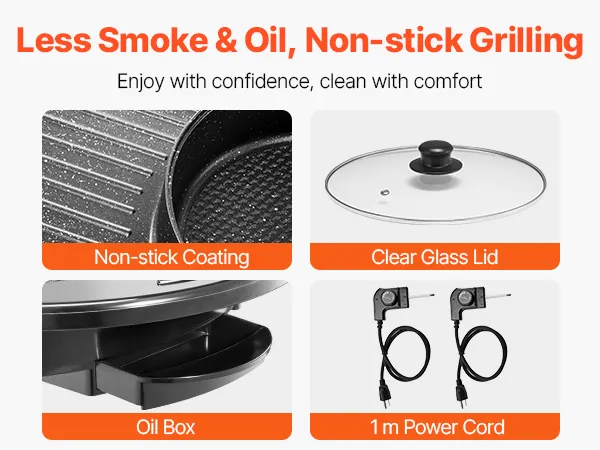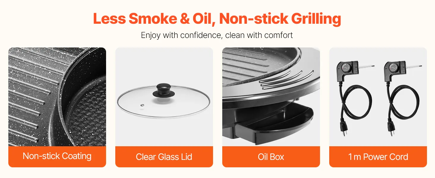 Praktyczna konstrukcja: Otwory wylotowe oleju w naszym grillu pozwalają na skuteczne odprowadzenie nadmiaru oleju, a pojemnik na olej ułatwia czyszczenie. Doskonale nadaje się do gorącego garnka, serowego fondue, japońskiego oden lub koreańskiego grilla w domu
