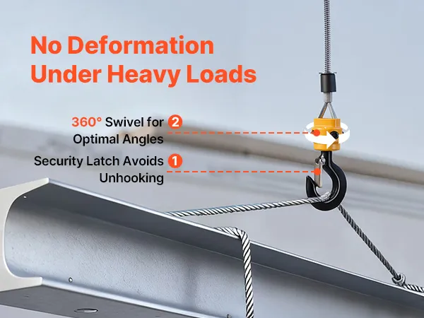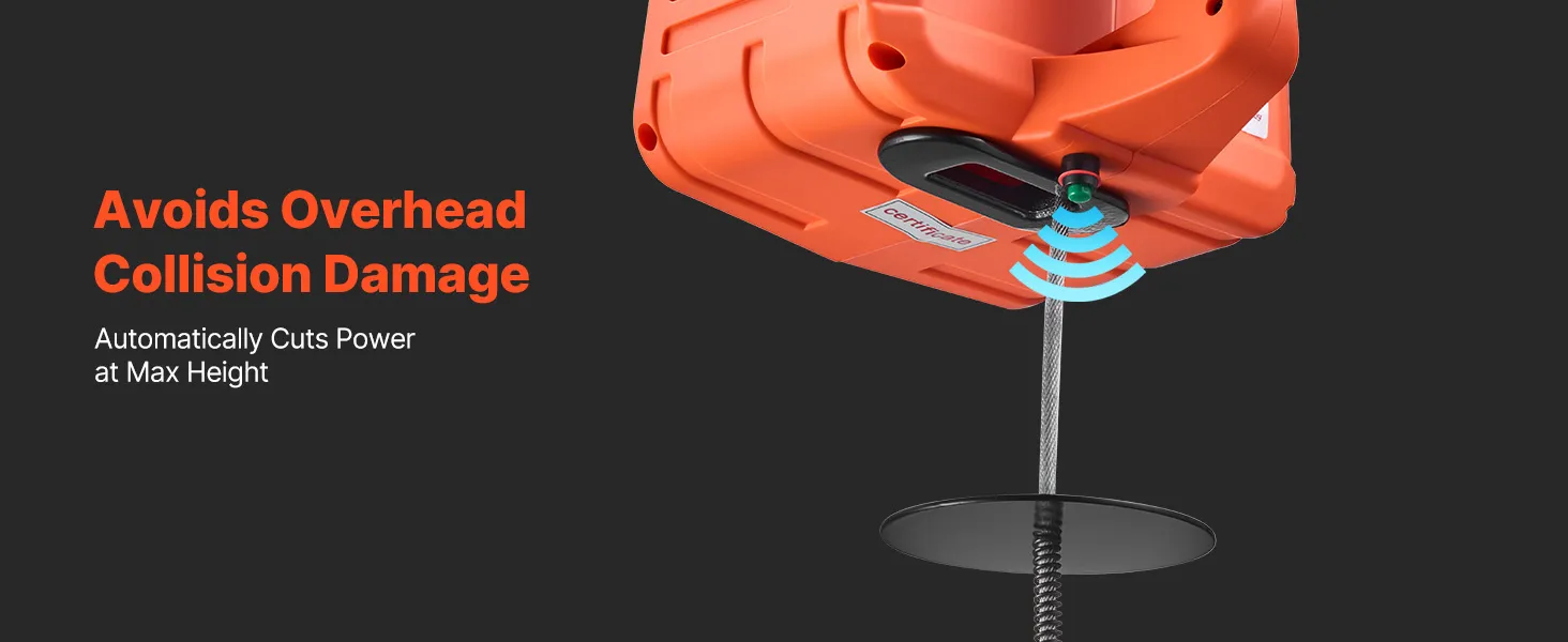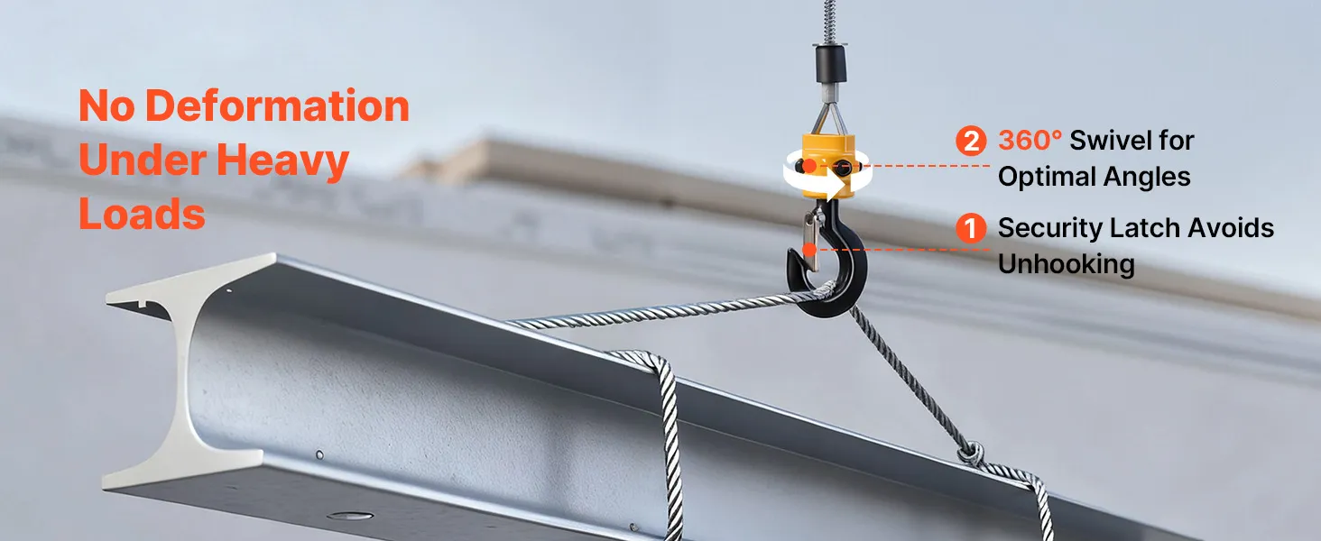 Multi-Layer Security Protection: This electric hoist winch combines electronic and mechanical brakes for confident stopping. A limit switch and 360° latch hook add security, and the motor auto-stops at power loss or top limit to help avoid drops