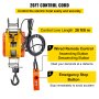 Przewodowe zdalne sterowanie tym wciągnikiem odbywa się za pomocą przełącznika uchwytowego. Ciśnienie w górę rośnie, ciśnienie w dół jest odwrócone. Kabel o długości ok. 8 m umożliwia zdalną obsługę.