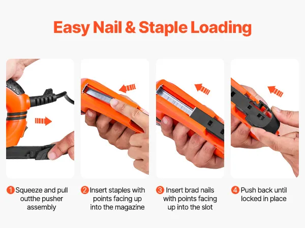 Ta elektryczna gwoździarka 2 w 1 łączy w sobie funkcje zszywania i wbijania gwoździ. Nie martwiąc się o czas pracy i dostosowując się do różnych warunków pracy, umożliwia szeroki zakres zadań związanych z mocowaniem.