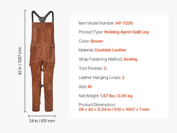 Spawaj bezpieczniej dzięki naszemu wytrzymałemu skórzanemu fartuchowi spawalniczemu z dzielonymi nogawkami. Ognioodporny i wytrzymały, zapewnia niezawodną ochronę przed iskrami i płomieniami. Posiada trzy kieszenie na narzędzia, dwie skórzane szlufki do zawieszania, krój z dzielonymi nogawkami i regulowane paski poprzeczne, jest idealnym towarzyszem spawalniczym.