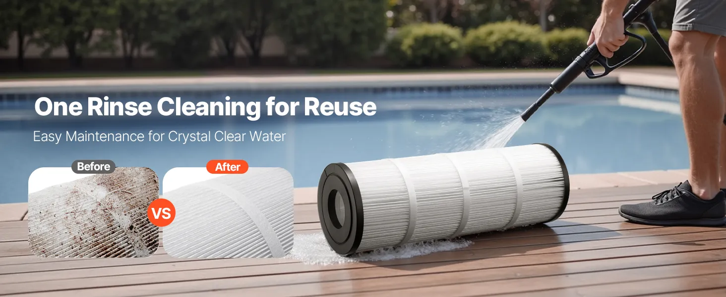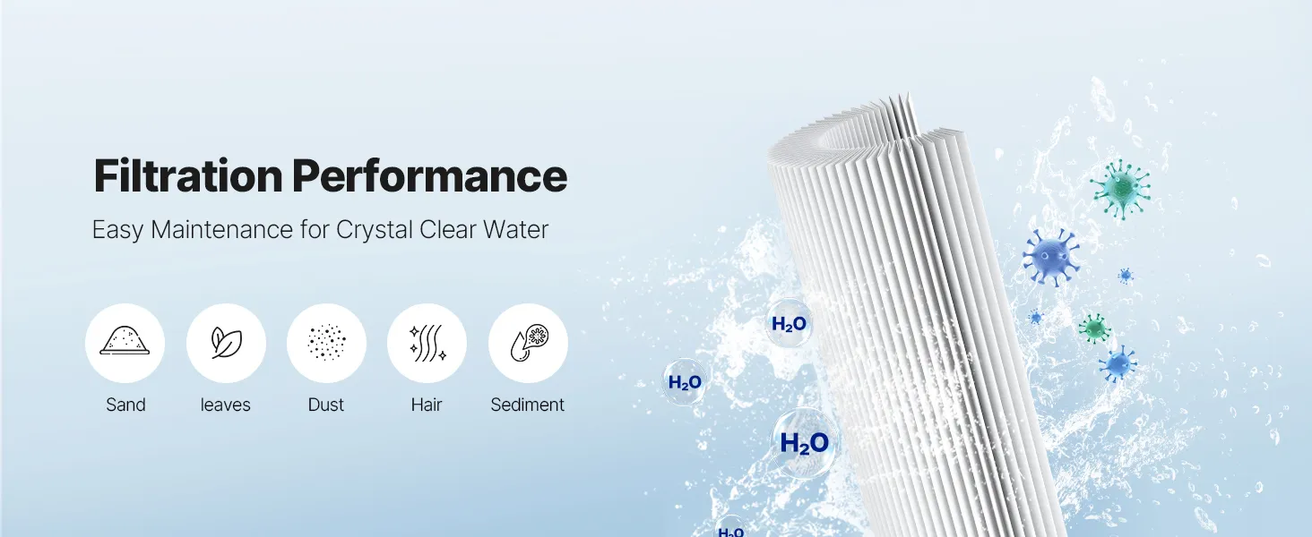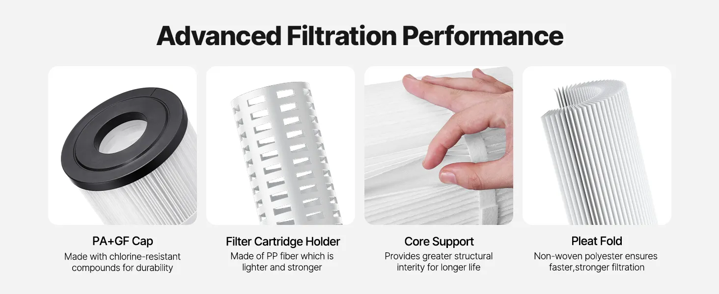 Certyfikat NSF/EPA: Ten wkład filtrujący do basenu i spa posiada certyfikat NSF/EPA. Dzięki precyzji filtracji 50 mikronów skutecznie wychwytuje włosy, liście, kurz, brud i drobne cząsteczki, zapewniając czystą i przejrzystą wodę.