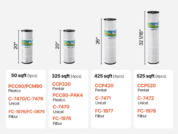 50 stóp kwadratowych wkładów filtrujących do basenu