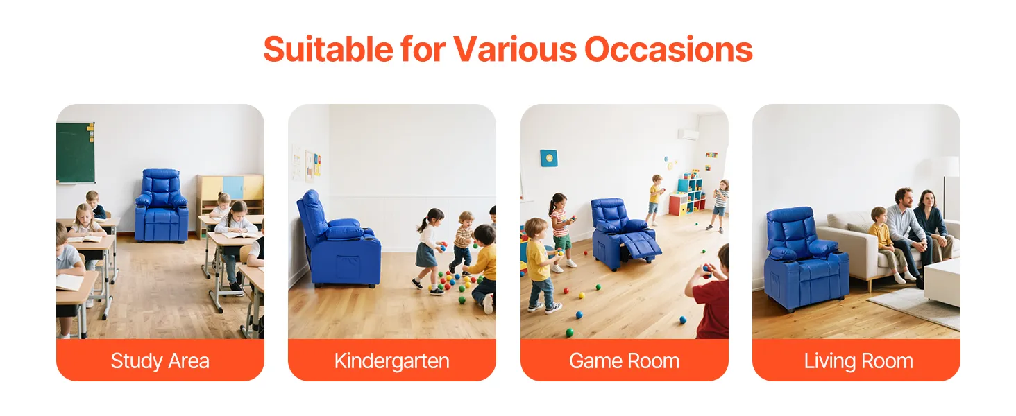 Ten fotel dla maluchów idealnie sprawdzi się w pokojach do nauki, salonach, pokojach dziecięcych, bawialniach i innych pomieszczeniach.
