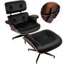 Klasyczny fotel i podnóżek ze sklejki orzechowej ze skóry PU w stylu Eames